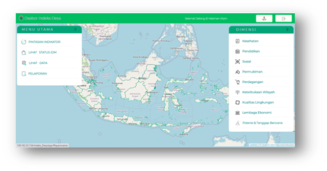 Geospatial-based website (WebGIS) which was developed to spatially visualize the results of village data collection and processing as one of the basis for the planning, implementation, and monitoring and evaluation processes in village development carried out by the Ministry of Villages, Development of Disadvantaged Regions, and Transmigration of the Republic of Indonesia.