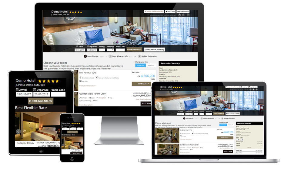 Coming from hoteliers that understand the online business concept better than any existing online travel, our Online Hotel’s Engine is a very effective online sales channel for you as an hotelier. Our online platform not only serve as online travel agent but also Internet Booking Engine. Our online hotel’s engine will automatically provide booking engine that connects to hotel’s website or we built them a fully customized mobile responsible website at one go.